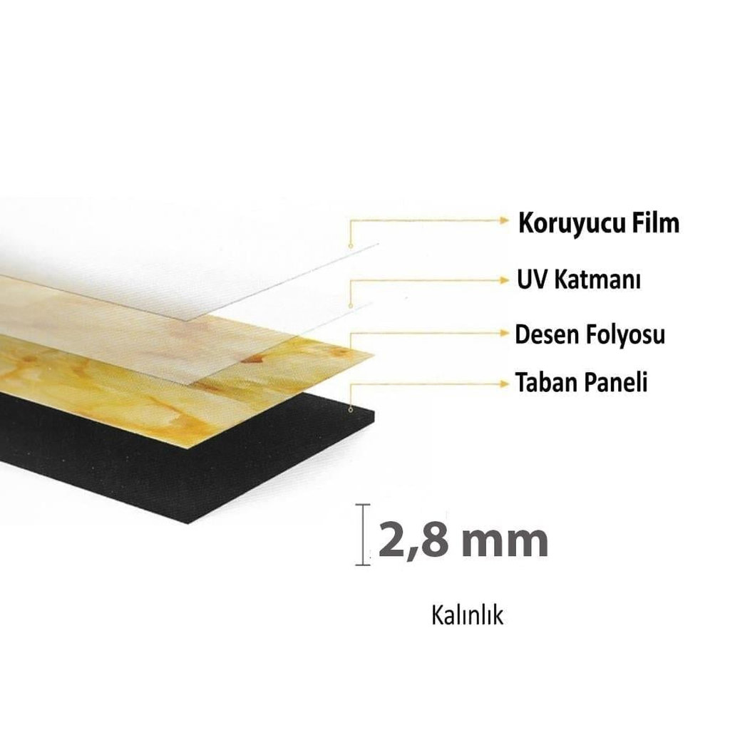 Yalnızca 2,8 mm kalınlığa sahip bu hafif panel, taş veya seramik gibi ağır malzemelere ihtiyaç duymadan hızlı ve kolay montaj imkanı sunar. Yapıştırıcı ile duvara uygulanabilir, kesim işlemleri ise maket bıçağıyla rahatça yapılabilir.