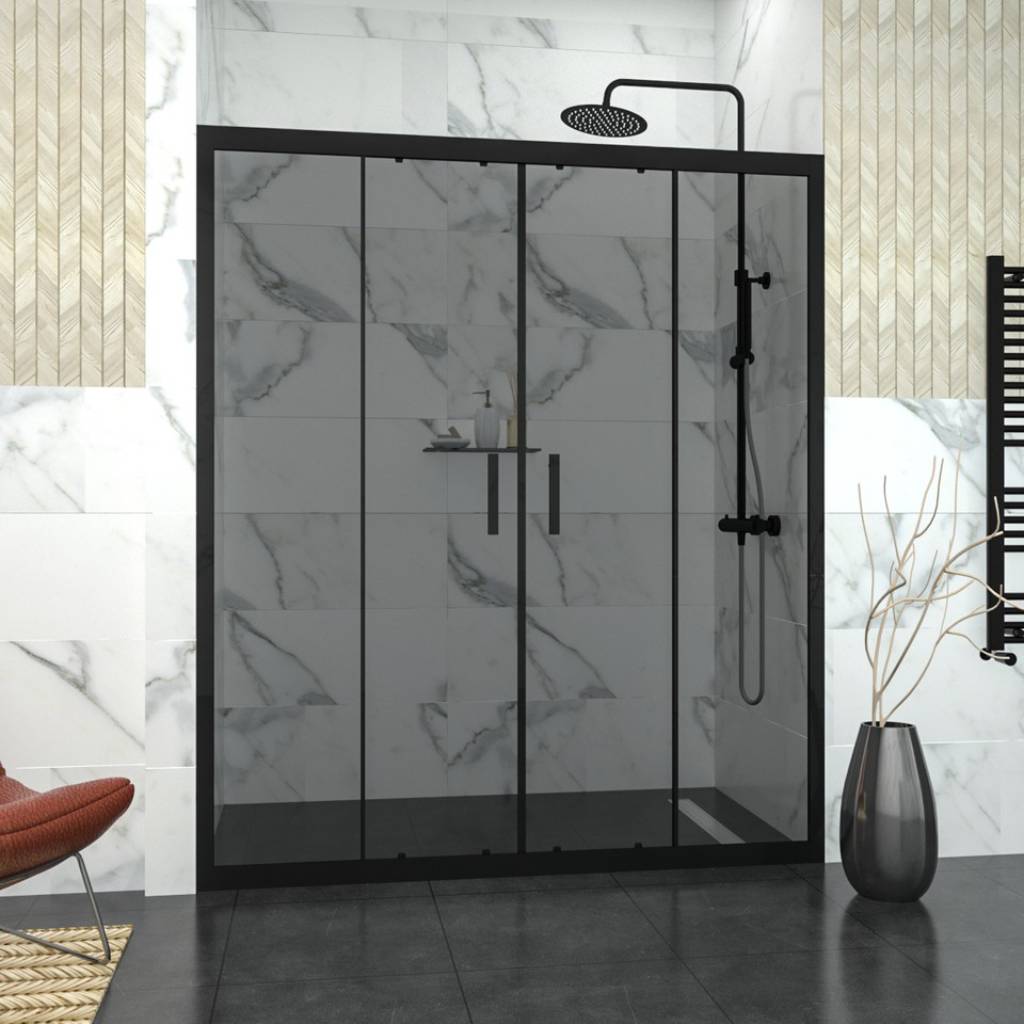 Duşakabin Ön Cephe 2+2 – Siyah Profil, Temperli Füme