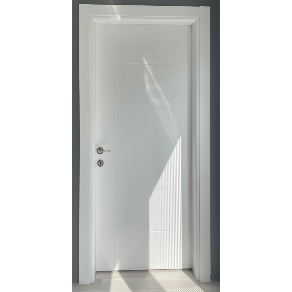 Kapı kanadı, pervaz ve kasa dahil takım halinde sunulan bu model, yatay ve dikey geçme detaylarıyla klasik ve çağdaş iç mekanlara uyum sağlar. Oturma odası, yatak odası, çocuk odası gibi tüm yaşam alanları için uygun olan bu beyaz melamin kapı, hem yeni yapılar hem de renovasyon projeleri için tercih edilmektedir.