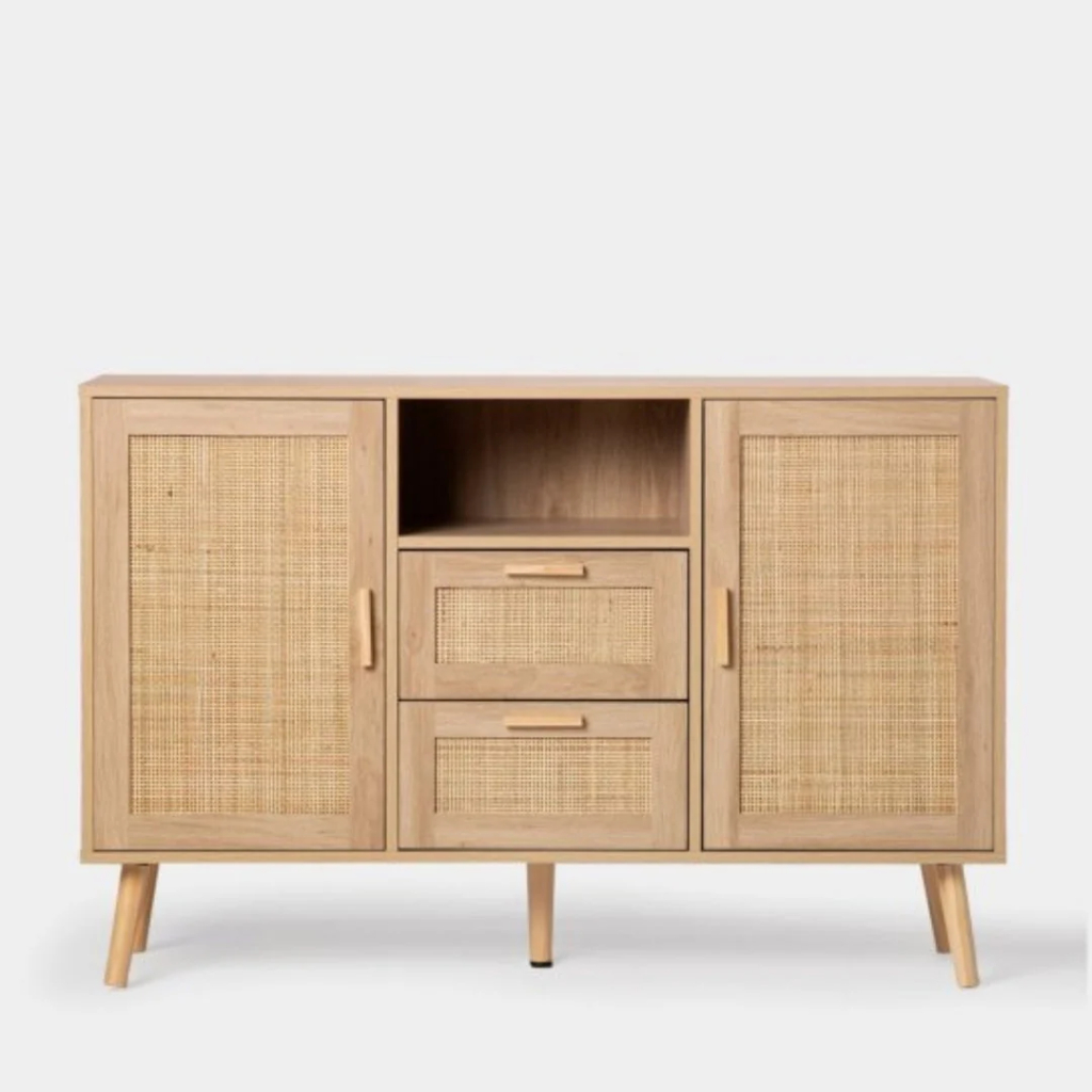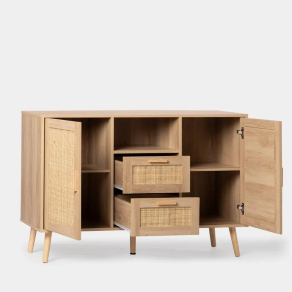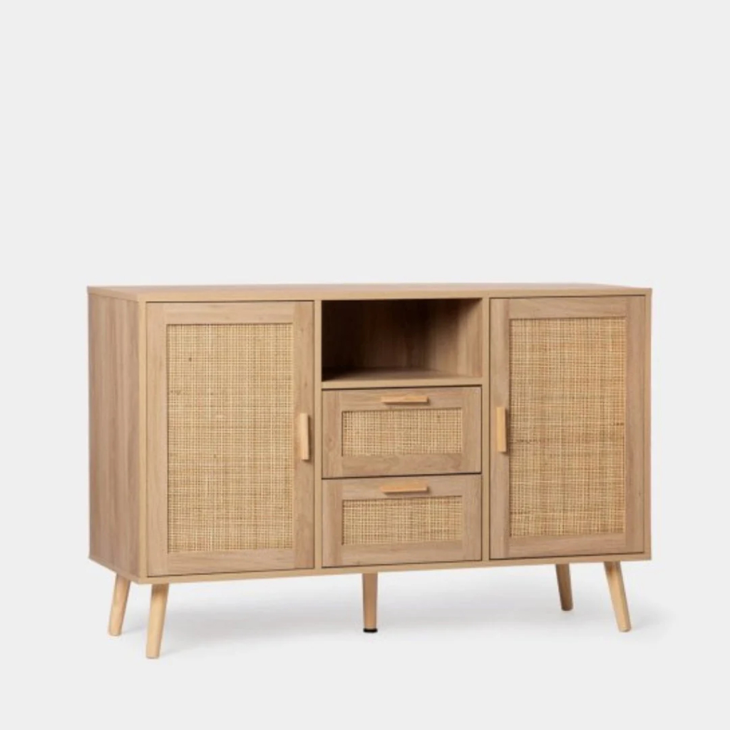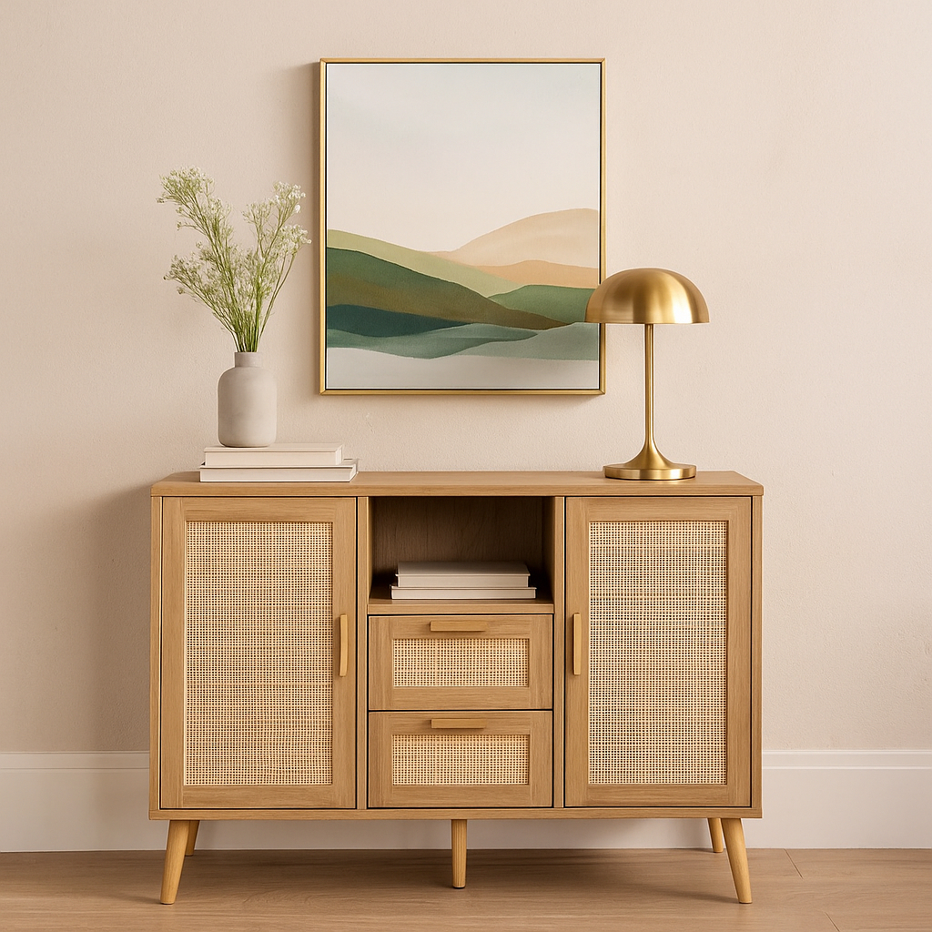 ✅ Doğal rattan ve açık meşe kombinasyonu